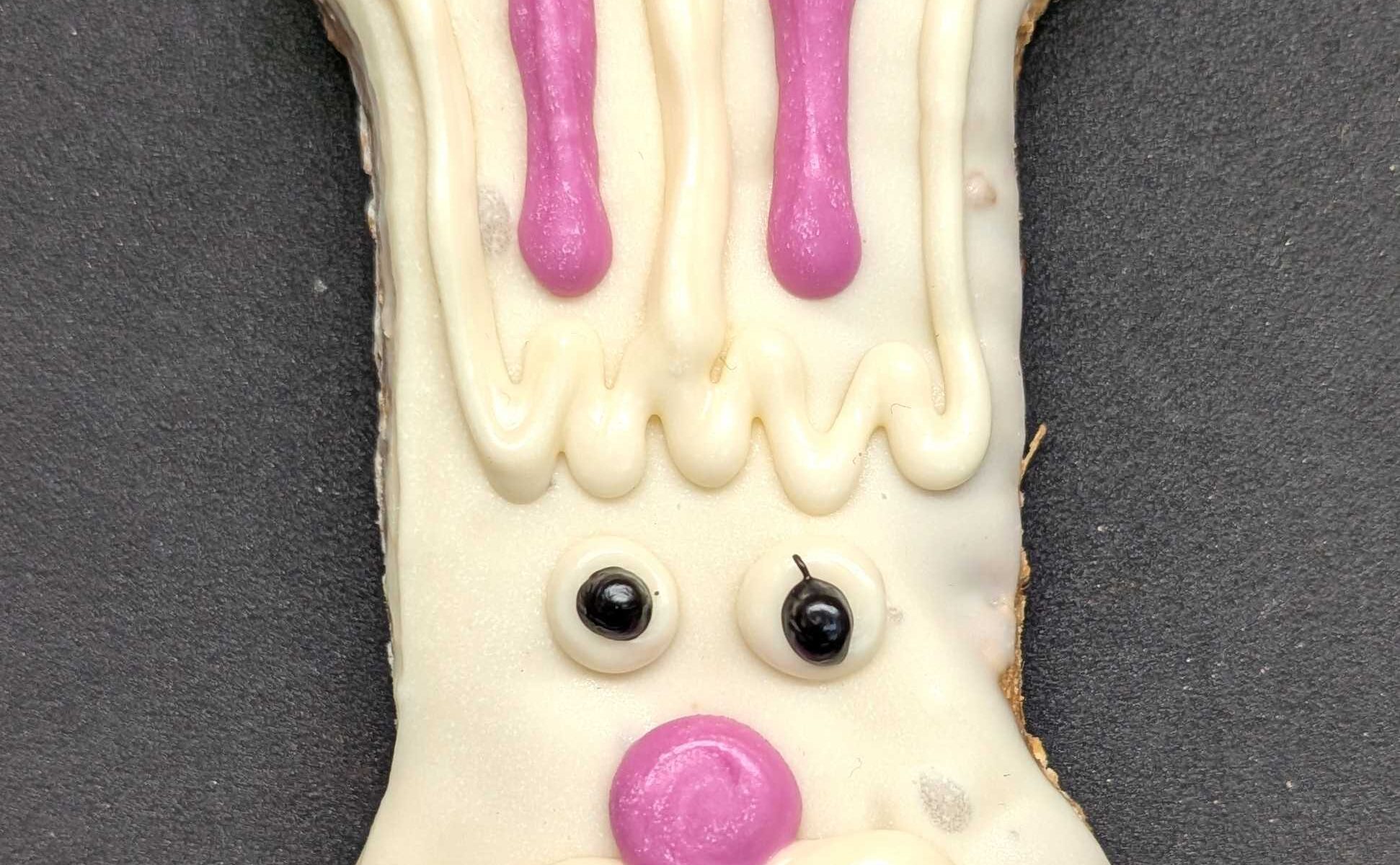Ingredients: Organic spelt flour, barley flour, barley flakes, all natural peanut butter, raspberries, flax seeds, ground flax, yogurt chips, beet powder and vegetable carbon